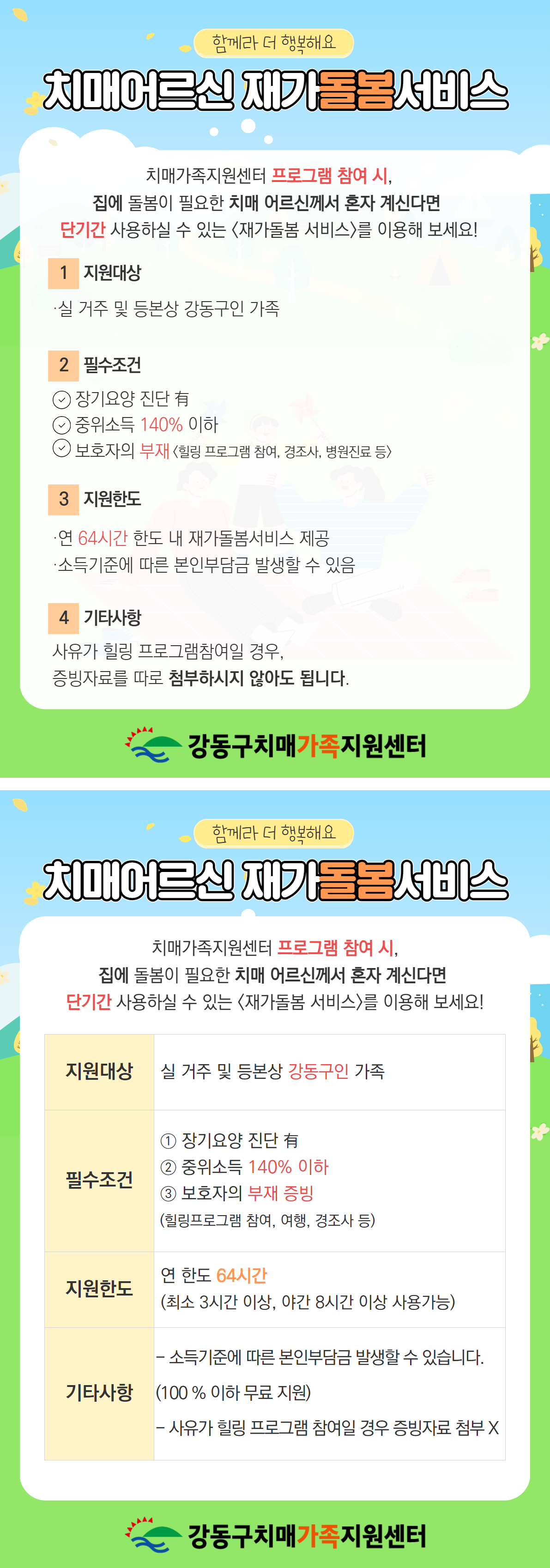 온(ON)돌 서비스 - 2026년 강동구 치매어르신 재가돌봄서비스 이용 안내
